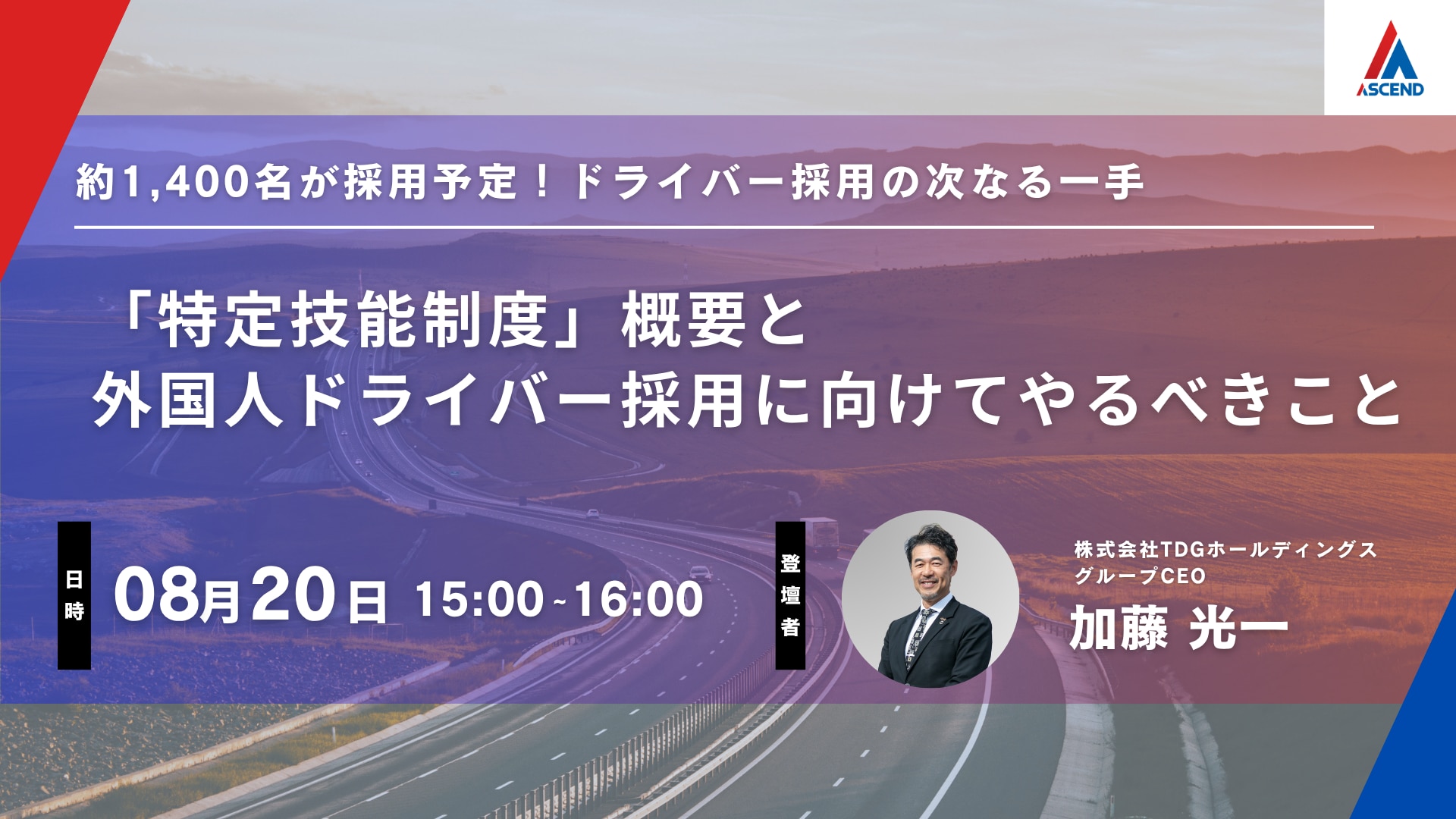 「制度の全体像を正しく把握したい」「実際に外国人ドライバーを採用する場合、進める際の手順について整理したい」「作るべき社内の体制や、想定される費用・対応を見積もっておきたい」といったご関心をお持ちのご担当者様に向けた、制度理解と活用判断の起点となる解説セミナーです。