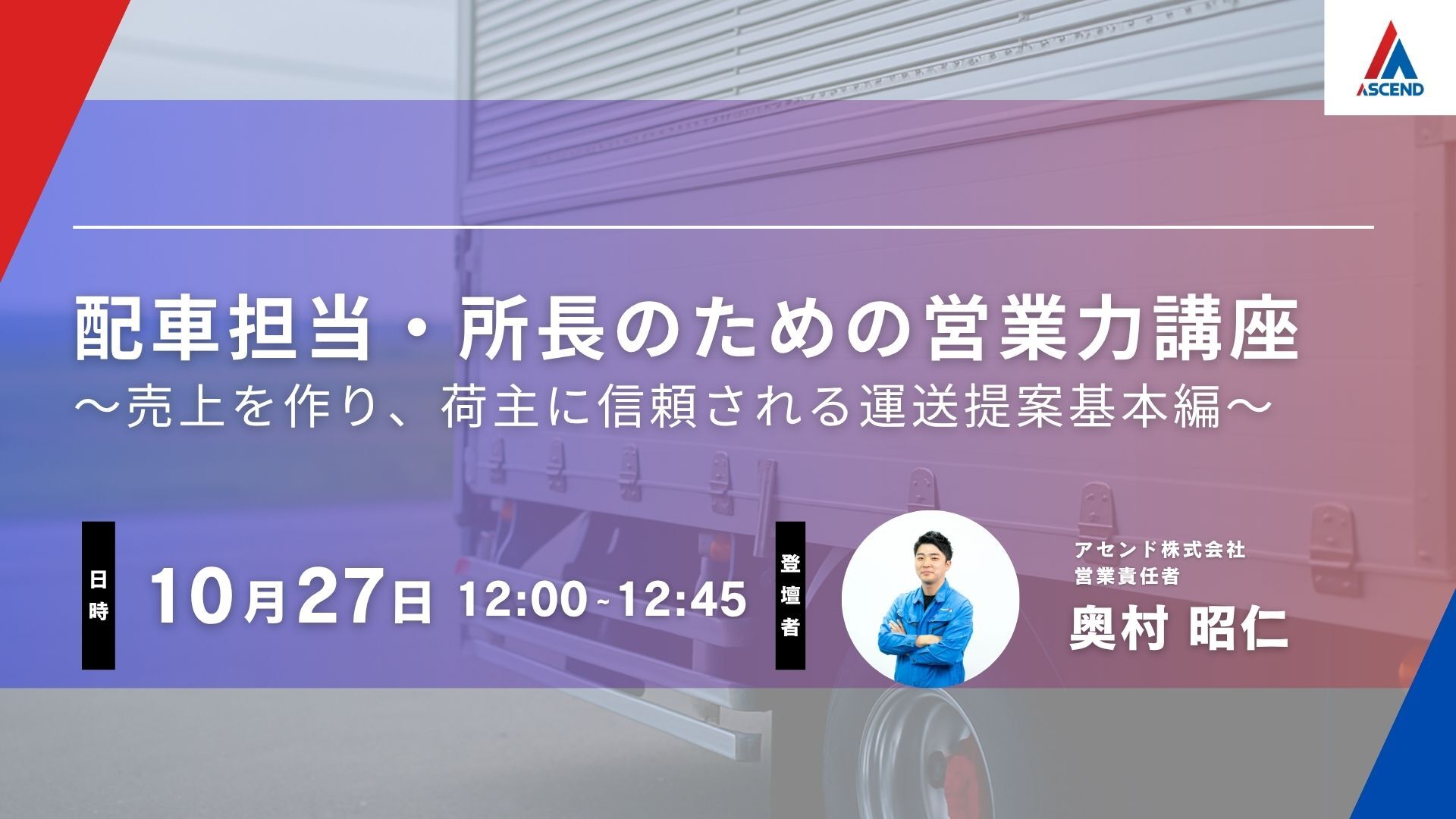 所長・配車担当者という現場を取りまとめる役割の方の動き方を変えることをテーマに「売上を作り、荷主に信頼される運送提案」の実践方法をお伝えします。