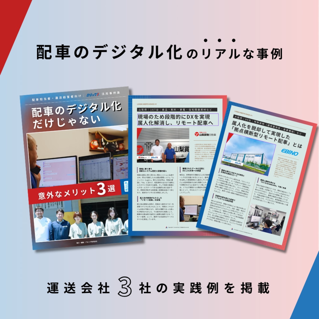 配車のデジタル化を実践した3社のリアルな事例を紹介。運送管理システム「ロジックス」を活用しながら、配車のデジタル化をどう叶えたか?その先にあった「意外なメリット」についても掲載しています。