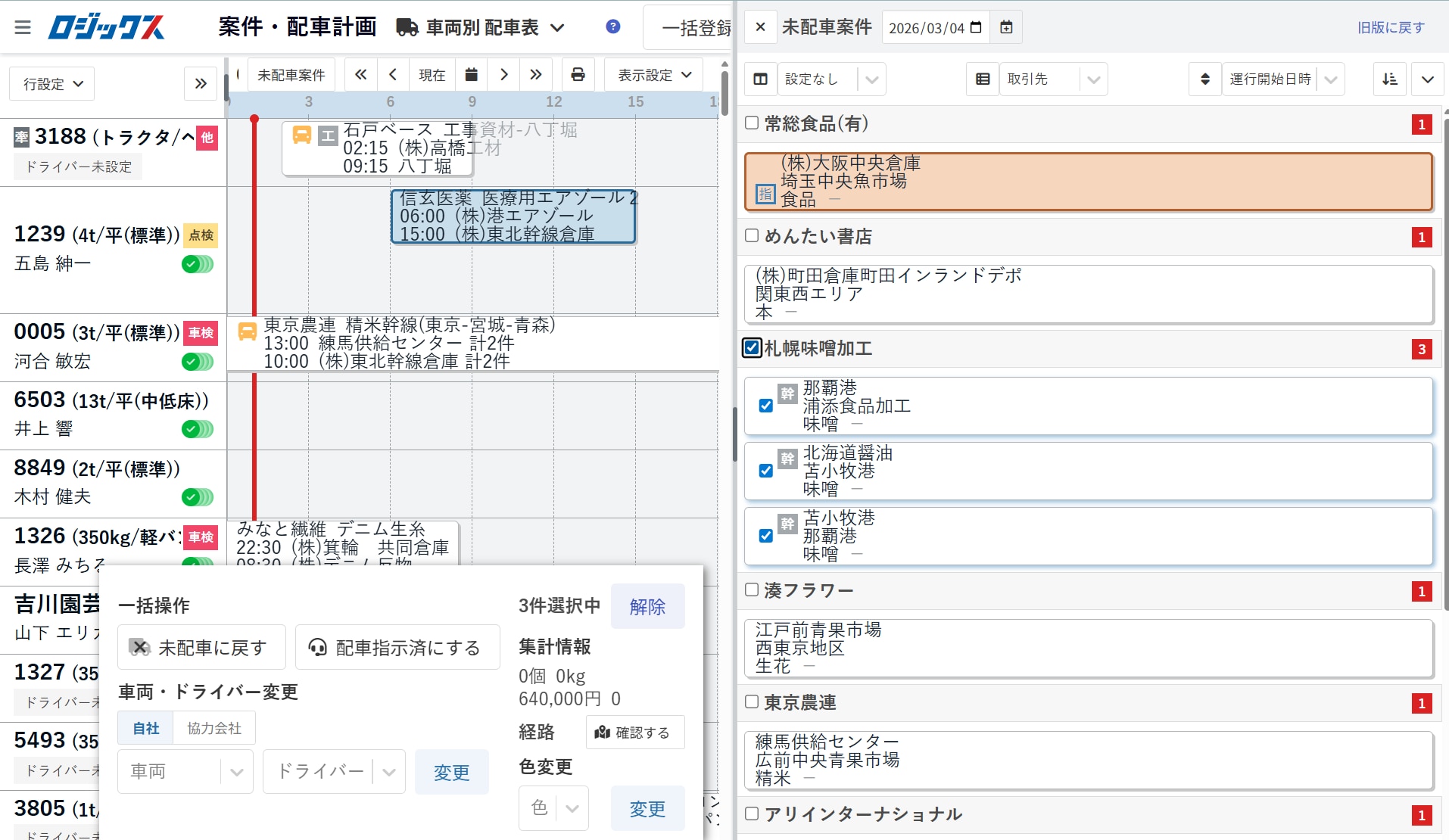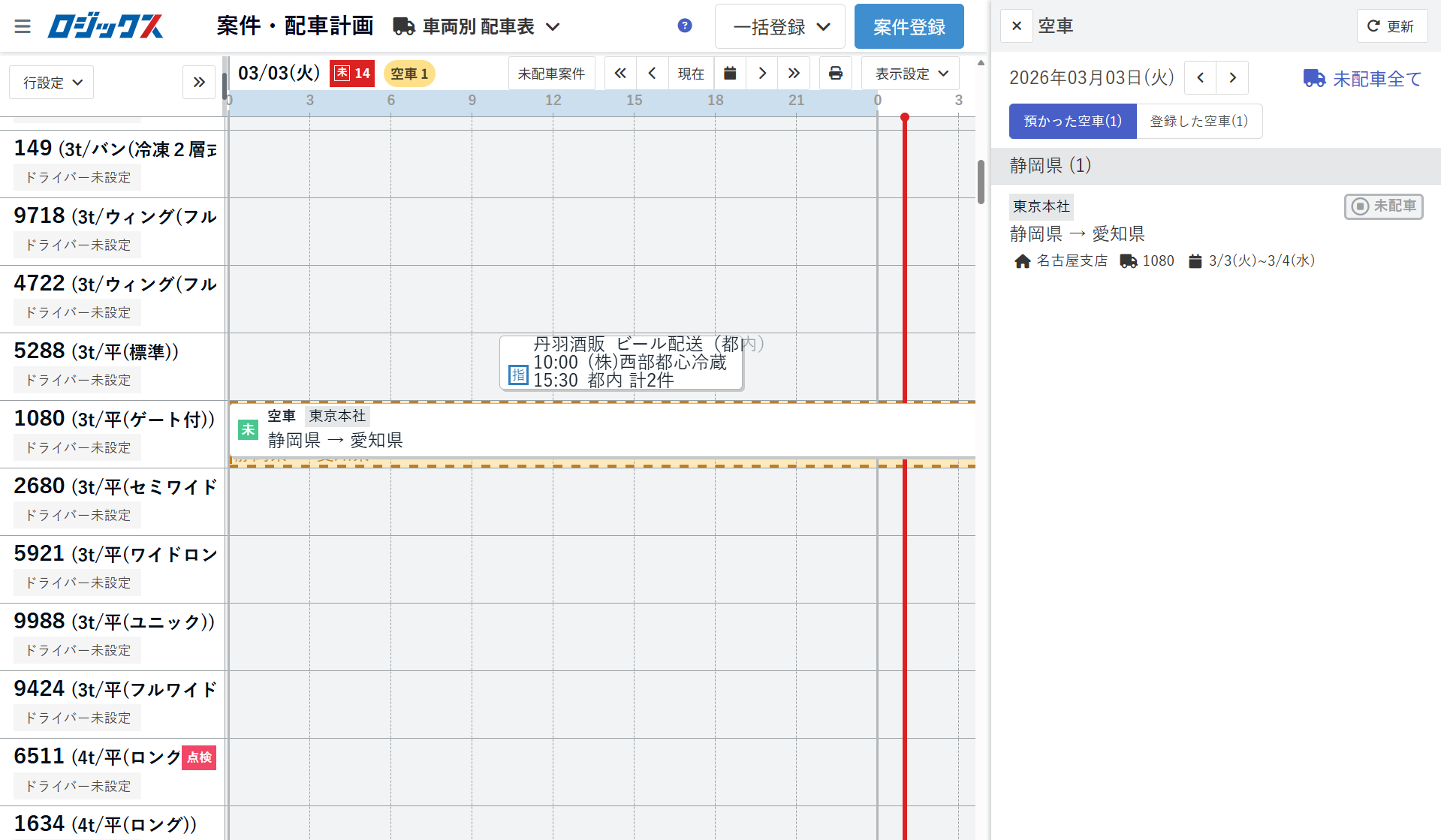 冨田さん:定常案件の使い勝手が本当に良くなって助かっています。「ロジックス」なら、基本情報を入れるだけで配車がほぼ完成してしまうし、あとは人と車をアサインするだけ。