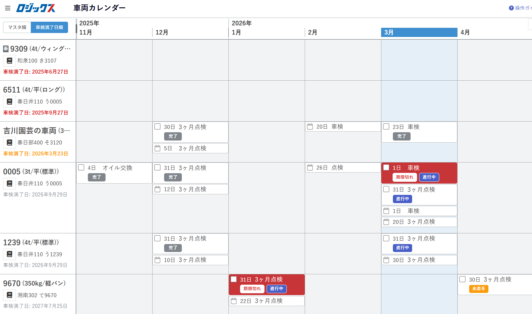 売掛金の入金予定が細かい粒度で把握できるようになったことで、会計ソフトへの連携もスムーズになり、資金繰りも正確性とスピードが向上しました。また、車両の車検や3ヶ月法定点検のスケジュール管理などもロジックス上で行っています。
